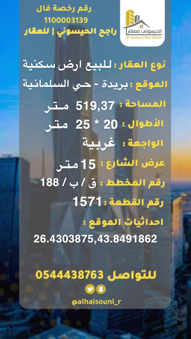 صور الوحدة | أرض للبيع في حي السليمانية | راجح الحيسوني وسيط و مسوق عقاري