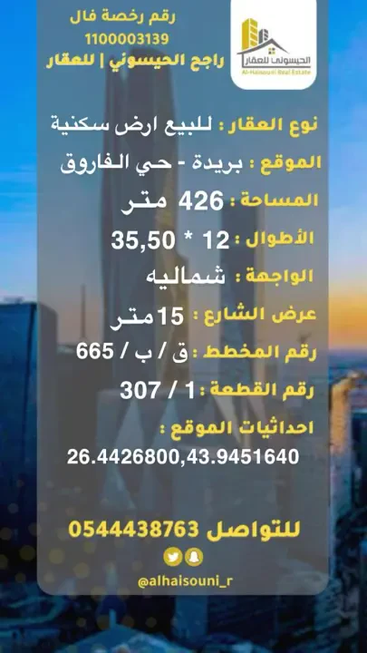 طلب اتصال | أرض للبيع في حي الفاروق | راجح الحيسوني وسيط و مسوق عقاري